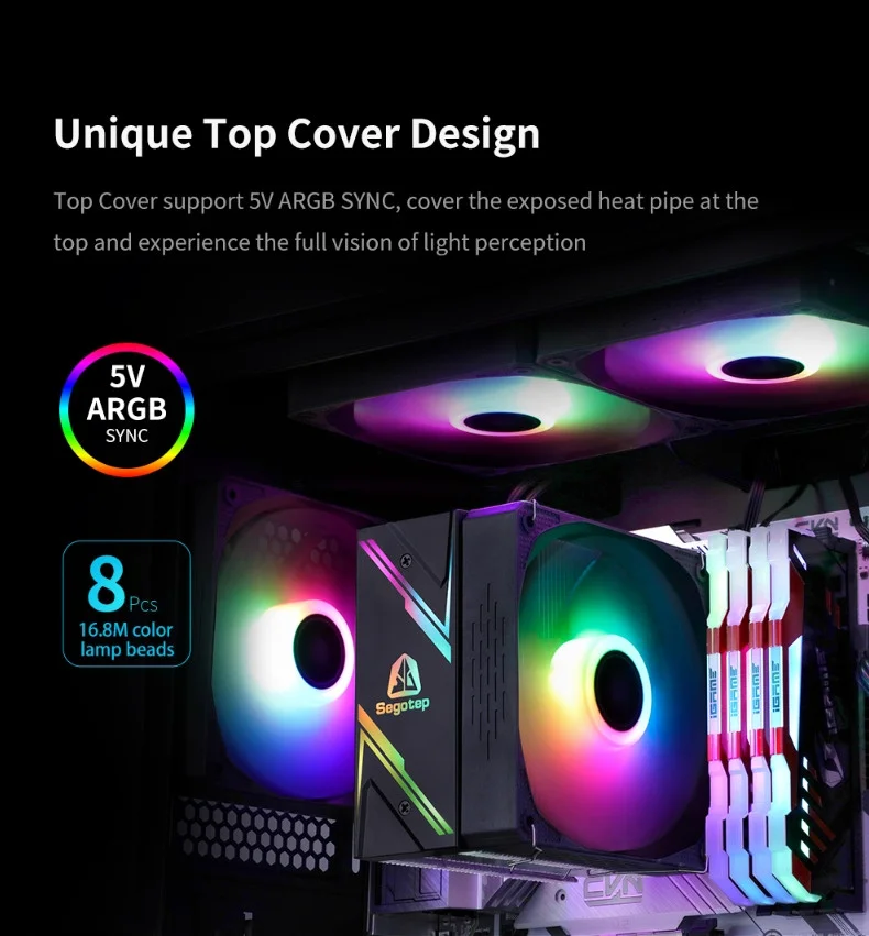 Üst kapak 5V ARGB SYNC'yi destekler, üstteki açıkta kalan ısı borusunu kapatır ve ışık algısının tam vizyonunu deneyimleyin.