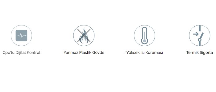 - Trafo sargıları içindeki ısı sensörü ile herhangi bir sebeple oluşabilecek aşırı ısınmaya karşı koruma sağlar, güvenli çalışma sunar.