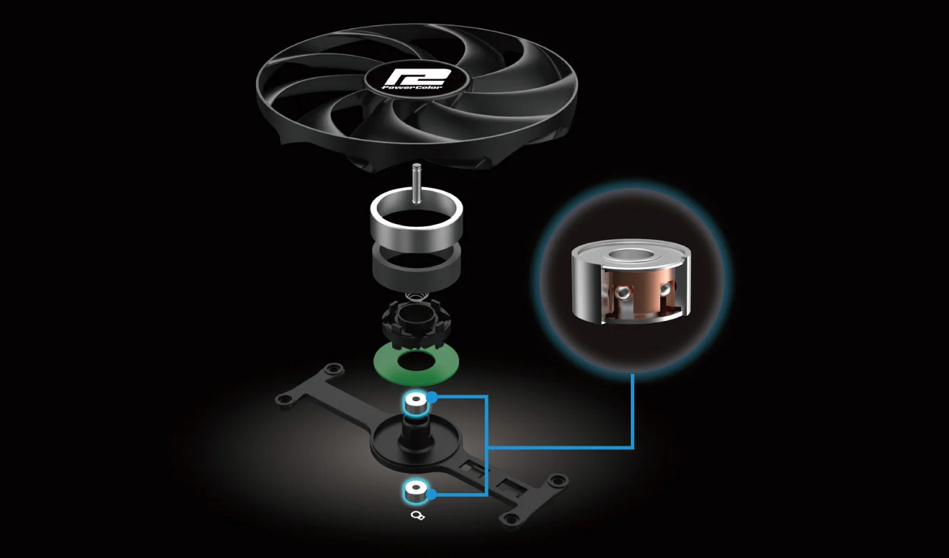 PowerColor RX 7800 XT serisi, genel kararlılığı ve uzun ömürlülüğü artıran güçlendirilmiş bir arka plaka ve yapısal tasarıma sahip dayanıklılığı vurgular. Soğutma çözümü, verimli ısı dağılımı sağlamak için doğrudan temaslı bakır teknolojisini kullanır. Seri ayrıca, performansta uzun vadeli kararlılık sağlamak için tasarlanmış yüksek kaliteli Japon çift bilyalı rulmanlara sahip bileşenler içerir.